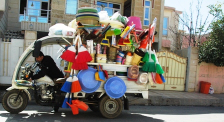 Bir de plastik kap-kacak satıcıları var ki, onların arabaları bir alem. Bir ev için lazım olacak birçok şeyi küçücük arabalarına sığdıran bu satıcılardan birinin arabası çok dikkatim çekmişti. Banyo leğenleri, çeşitli ebatta fırçalar, küçük ve büyük plastik tabaklar, süzgeçler, banyo lavoba fırçaları vesaire. Bu tür satıcılarda hemen hemer her hafta sokağımızdan geçiyor.