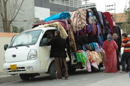 Sokak satıcıları hala varlıklarını devam ettiriyorlar ki, burada elzem. Haftanın belli günlerinde kumaş satan bir araba sokağımızın köşesine geliyor. Bir korna sesiyle kadınlar genç kızlar elbiselik seçimine başlıyorlar. Uzun elbise revaçta olduğundan olsa gerek herkes kendi kiyafetini diktiriyor. Genelde kadife kumaşlar tercih ediliyor.