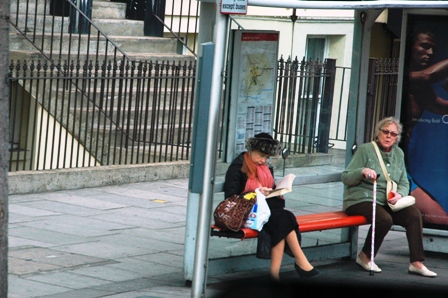 Durakta bekleyen iki Londralı